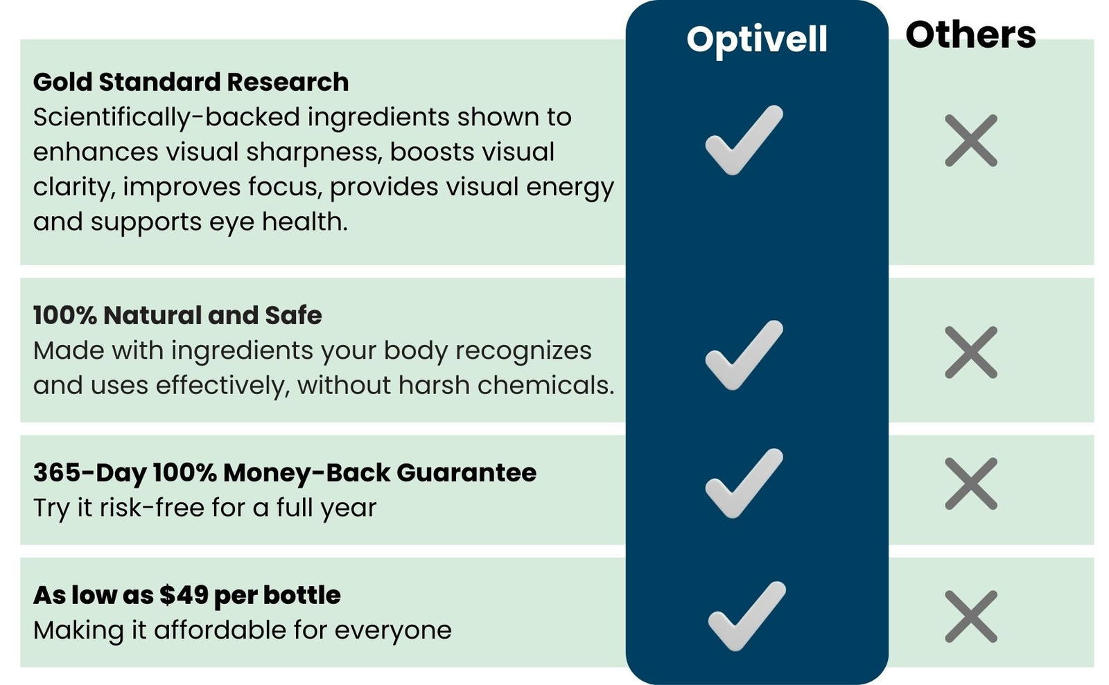 We’re so confident you’ll experience noticeable improvements that we back Optivell with a 100% satisfaction guarantee for 365 days. Start taking it as soon as it arrives, and within days, you may begin to notice sharper focus, reduced eye strain, and improved visual comfort throughout the day. As you continue your journey, you could experience gradual enhancements in visual clarity, night vision, and overall eye performance—making it the perfect time to track your progress and results. And if after several weeks or even months you’re not completely satisfied, simply request a full refund. With Optivell, you remain fully in control of your visual health journey—completely risk-free.